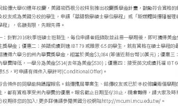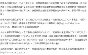 2016年美國密西根州立賽基諾大學(Saginaw Valley State University, 簡稱SVSU)海外移地教學,即日起展開招生。